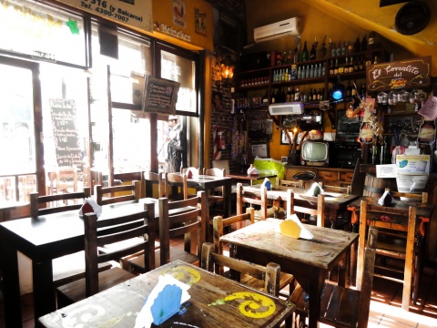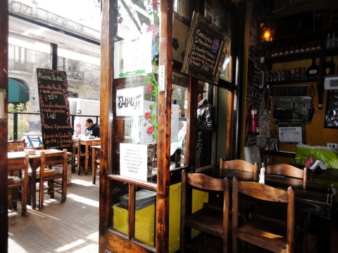 Si no pudiste entrar en Mezzo y Mezzo, proba suerte en este lugar: son los mismos dueños y tienen el mismo estilo. Podes comer adentro o afuera. Adentro el lugar es muy chico, pero es calido. Estilo ambientado con estrellas y luces que brillan, una balanza antiquïsima, lamparas hechas con damajuanas que penden del techo en la parte de los baños (muy borrachon, dijo un amigo mio), barriles de cerveza, paredes con fotos de toda la gente que paso por ahi, un lugar super cargado donde siempre se descubren cosas nuevas. Afuera hay tablones larguisimos de madera sobre la vereda, donde se comparte la mesa, que ofrecen una buena oportunidad para conocer a alguien. Para comer, chivitos uruguayos por un precio muy economico. Un amigo uruguayo nos dijo que son identicos a los de sirven en los \"carritos\" de Montevideo. Para tomar: medio y medio, invento uruguayo, mezcla de vino blanco y champagne. Delicioso, exquisito y explosivo. Animate y después nos contas!